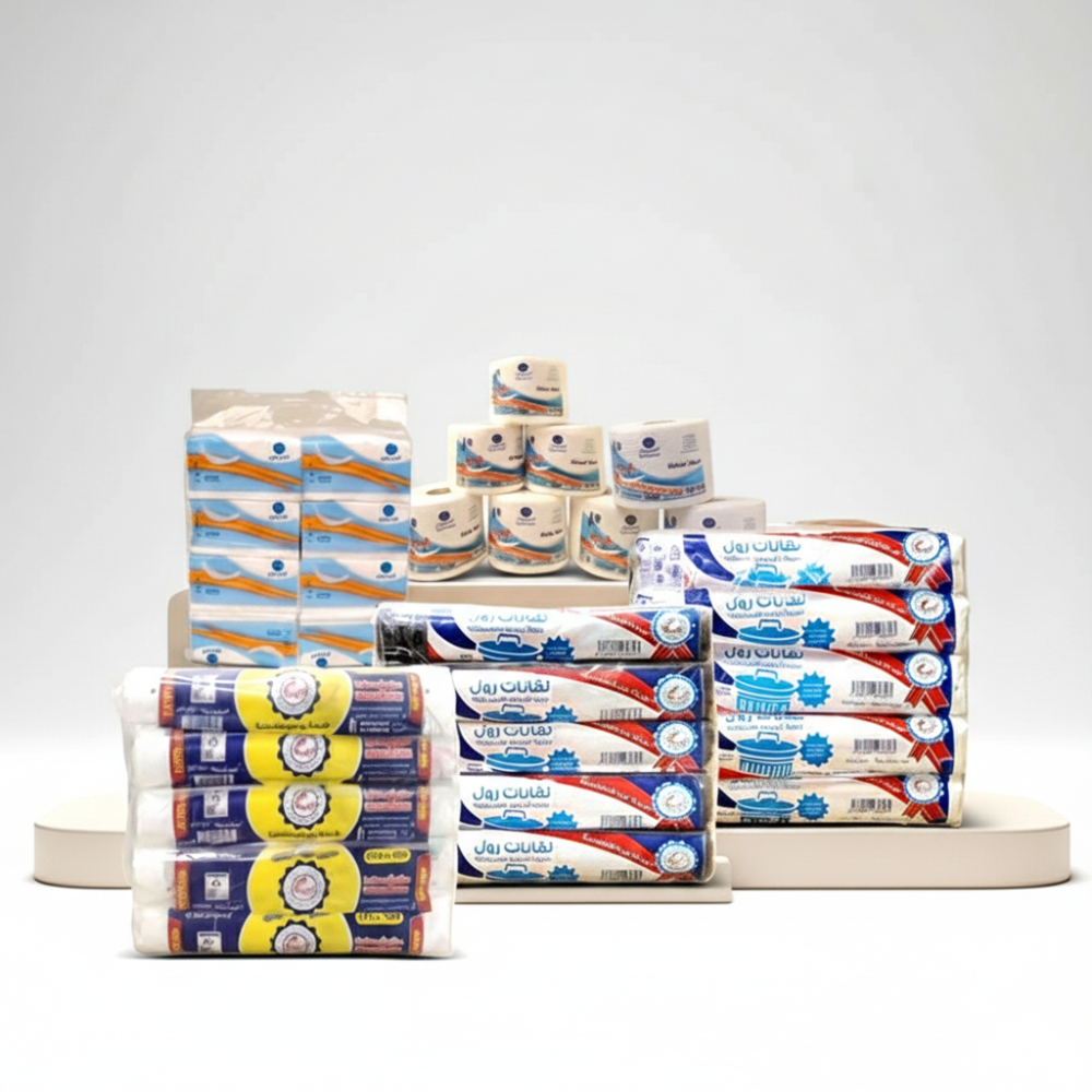 استمتعي بالراحة والنظافة في كل يوم مع بكج راحتك اليومية بكج متكامل تم اختياره بعناية ليضم مجموعة من المستلزمات الأساسية التي لا غنى عنها في كل منزل، لتوفري وقتك وجهدك وتحافظي على نظافة بيتك وأناقتك بسهولة.